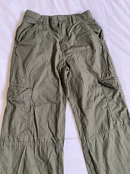 Широкі карго 100% бавовна кольору хакіЗаміри: пояс полурезинка 33, стегна 45, довжина 87/64, посадка 26/31