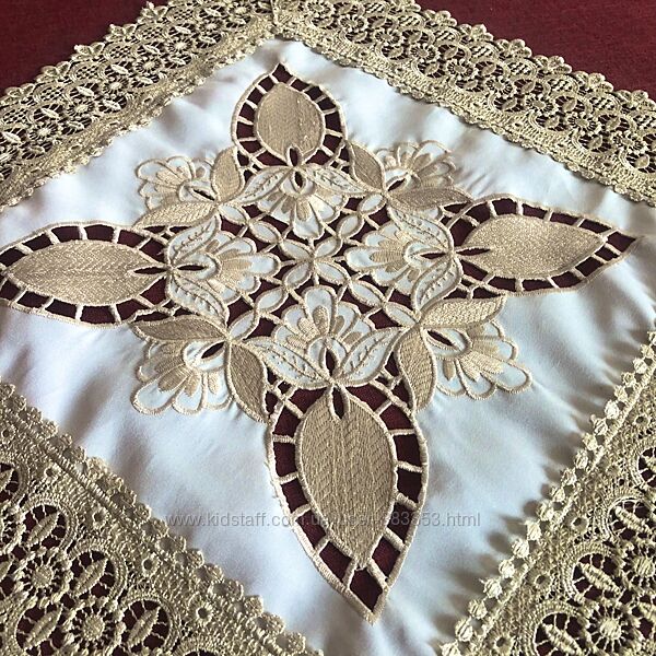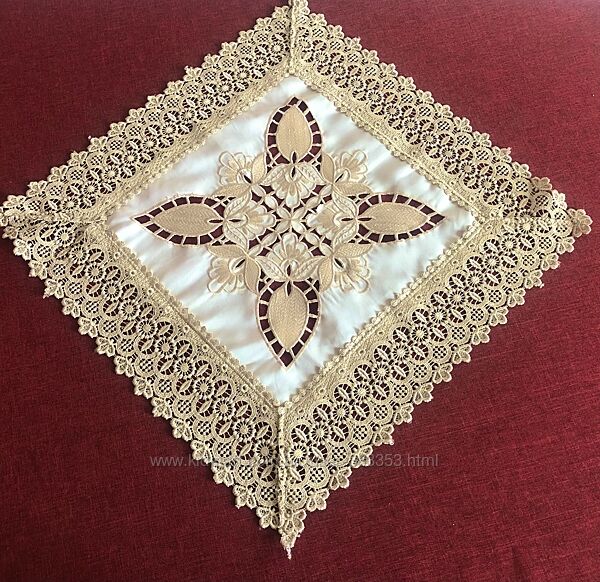 Подробное описание: Салфетка с вышивкой ришелье золотая45х45 см
