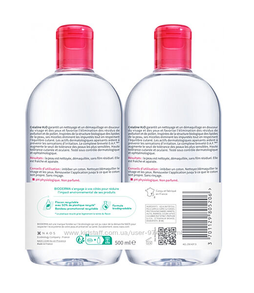 Подробное описание: Набір із 2-х шт. Заспокійлива міцелярна вода Bioderma Crealine H2O