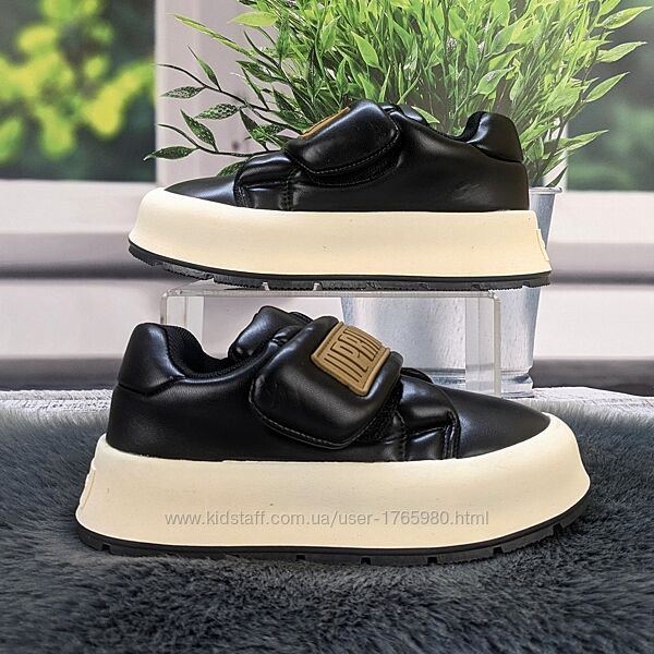 Подробное описание: Кроссовки детские для девочки на липучке черные на бежевой подошве 5605
