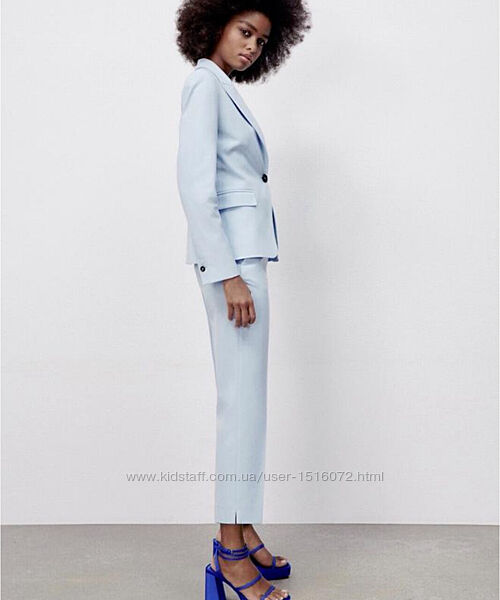 Уявіть собі піджак, який передає безтурботність неба в ясний день. Його світло-блакитний тон, м´який і сяючий, викликає відчуття свіжості та неповторної елегантності. Бездоганний і сучасний крій ідеально прилягає до тіла, створюючи вишуканий силует, який підкреслює фігуру .Це той тип одягу, який перетворює простий наряд на виразний стиль, ідеальний як для дня, так і для ночі, додаючи нотку вишуканості та ніжності.