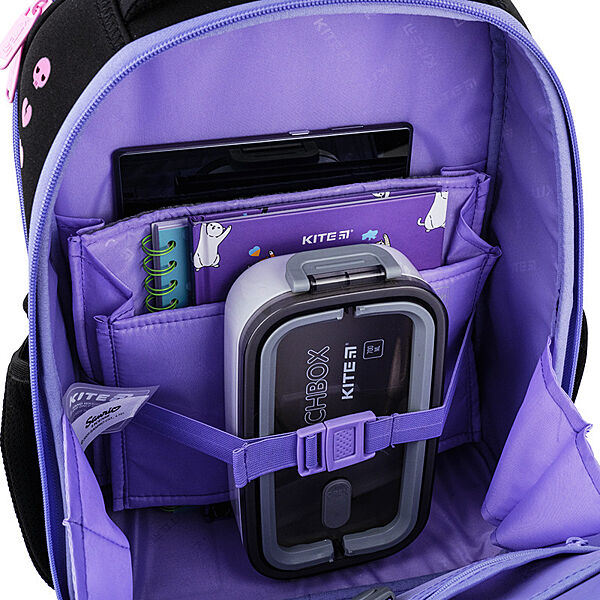 внутрішні роздільники для підручників та зошитів з еластичним фіксатором: допомагають гарно впорядкувати шкільне приладдя та правильно збалансувати вагу;