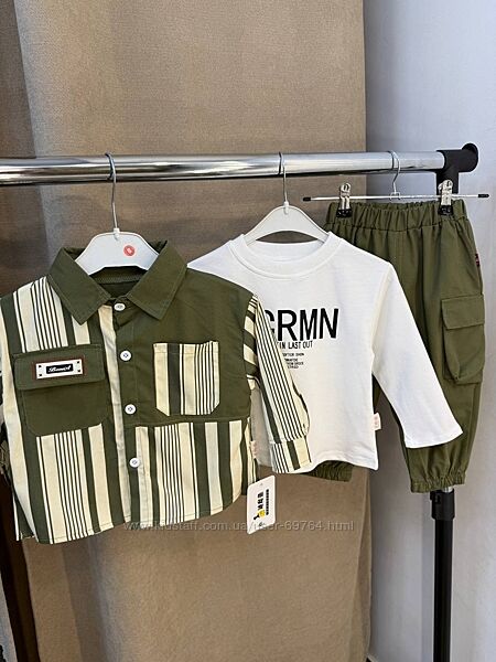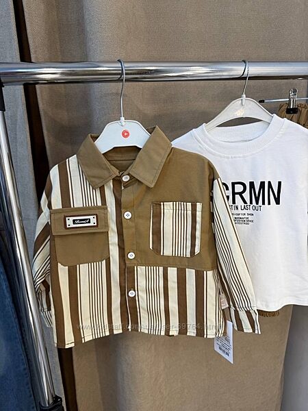 Стильный комплект тройка для мальчика,В комплект входят: джогеры на резинке, реглан и рубашка, все вещи можно компоновать с другой одеждой