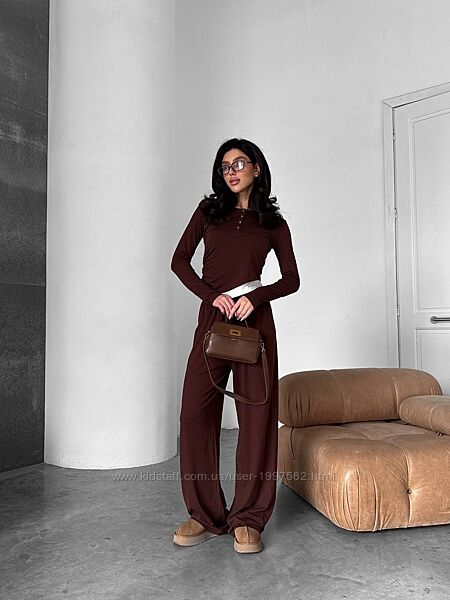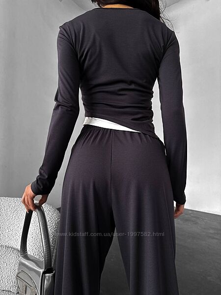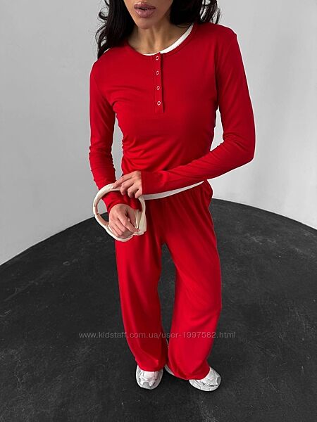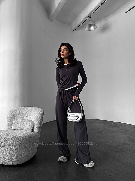 Це просто must have- зручний легкий приємний до тіла - вільні штани та подвійний контрастний лонг - ідеальне поєднання на кожен день