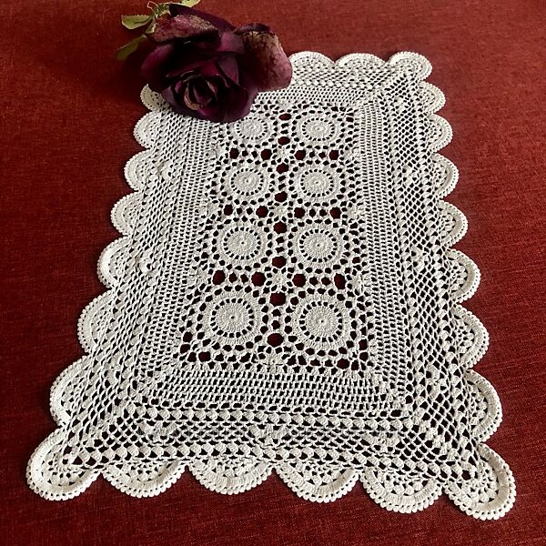 Подробное описание: Салфетка греческого кружева белые круги 45х30 см