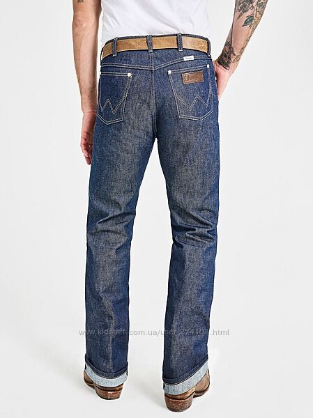 Версия 13MWZ со всеми оригинальными символами Wrangler® — семью шлевками для ремня, кожаной нашивкой, пятью карманами, строчкой кармана «W», плоскими медными заклепками и Selvedge тканью от культовой Cone Denim® White Oak