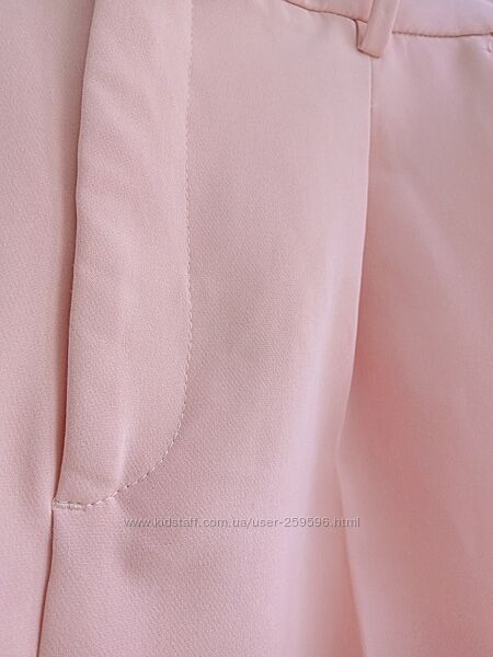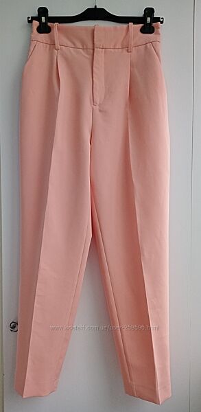 Брюки на стрілку ніжного персикового кольору. Ремінь було втрачено. Є бокові кишені. Тканина середньої щільності. Фасон мом, дещо укорочені, на нижчий зріст будуть повноцінної довжини. Дивіться по замірам.