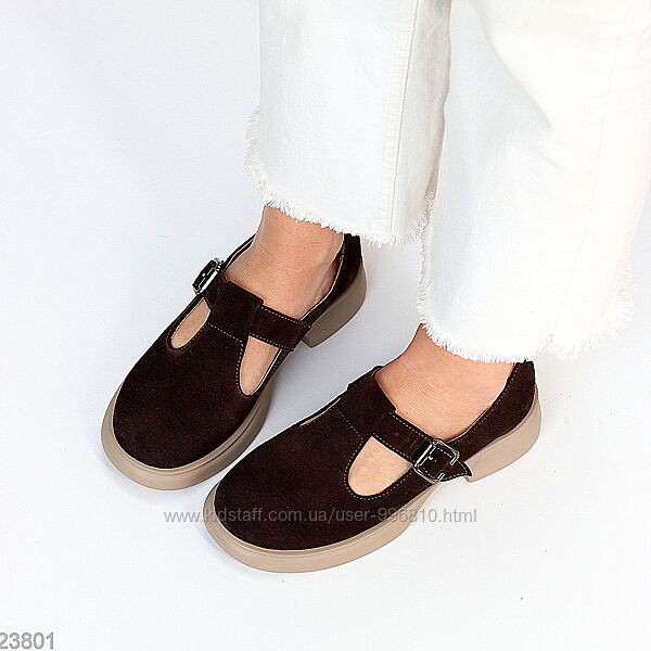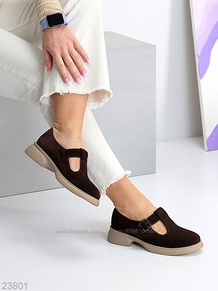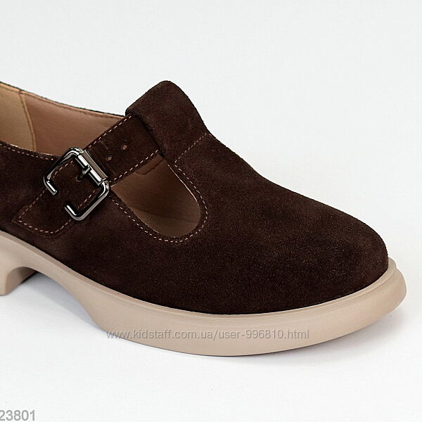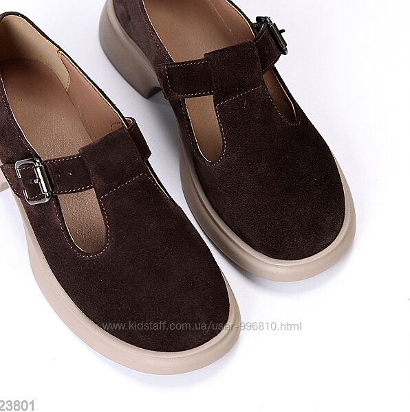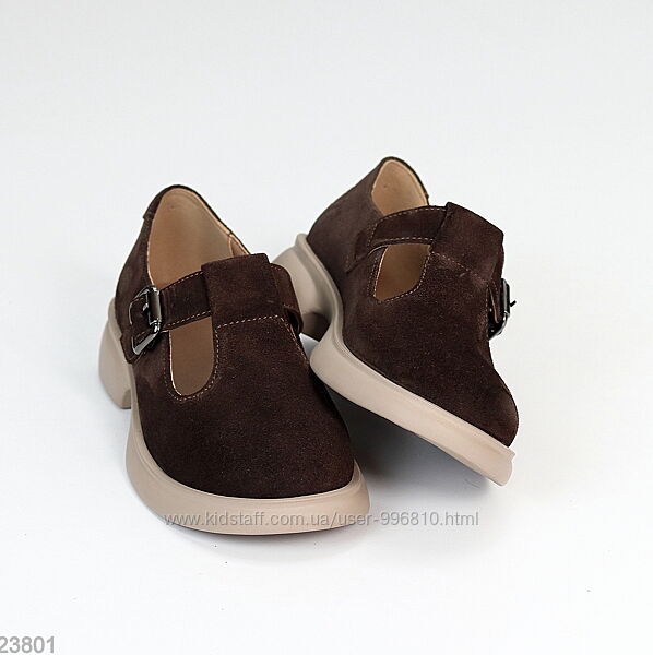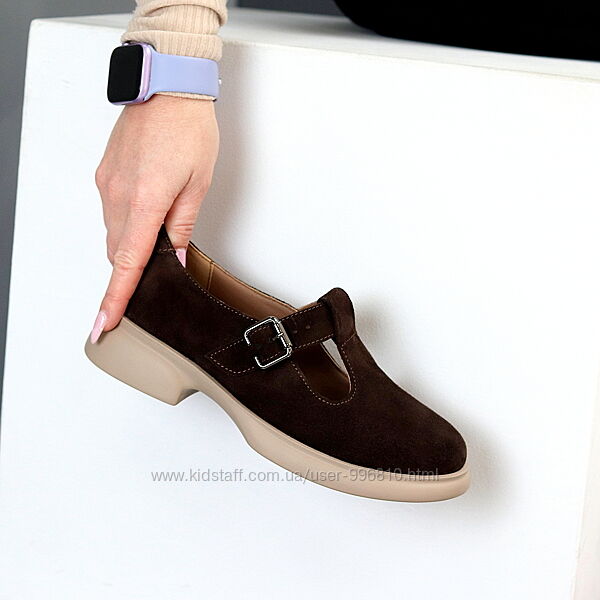 Подробное описание: Замшеві демі туфлі на ремінці натуральна замша низький хід колір шоколад