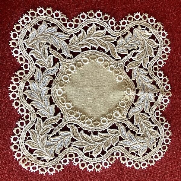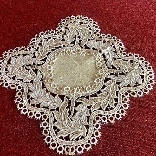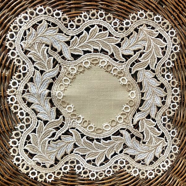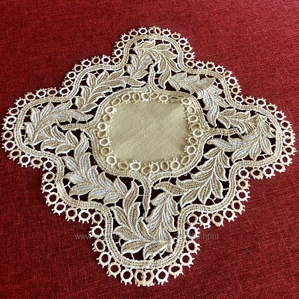 Подробное описание: Салфетка с игольным кружевом листья. 28х28 см