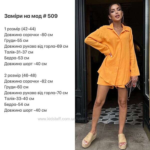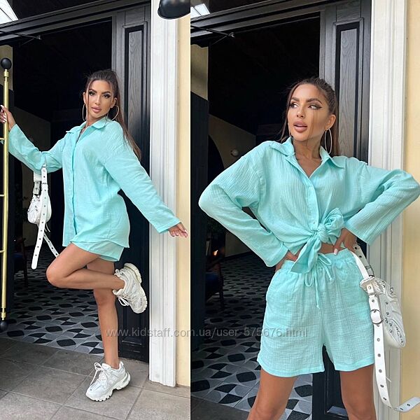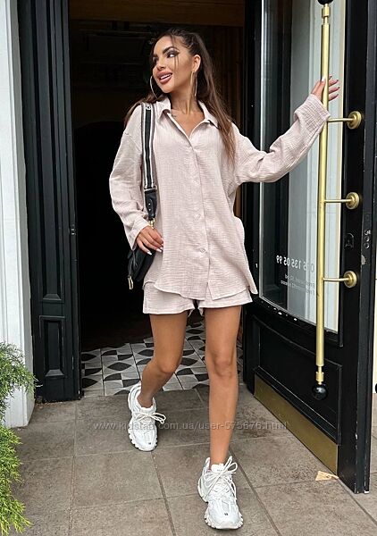 42-44, 46-48 Костюм сорочка та шорти муслін
