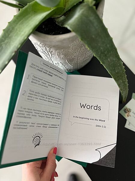 - Оптимальний зручний формат блокнота: він легкий та компактний, завжди можна брати з собою для роботи з словами будь де! (записування та повторення)