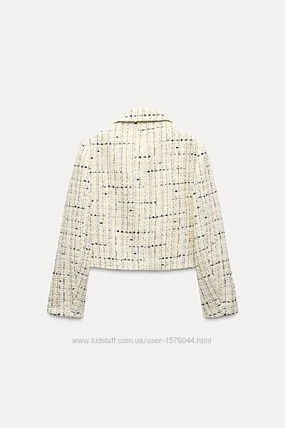 Блейзер с длинными рукавами и воротником с лацканами. Подплечники, передние карманы с клапанами. Застегивается на металлические пуговицы.