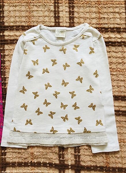 3-4 рок., Zara. реглан. Лонгслів. Biocotton 100%. Золоті Метелики. Яскраві квіти. стан новихЗолоті Метелики довжина 35; пог29;;рукав від вороту 39