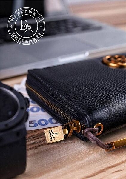 Подробное описание: Чорний чоловічий гаманець / барсетка GUCCI преміум якість