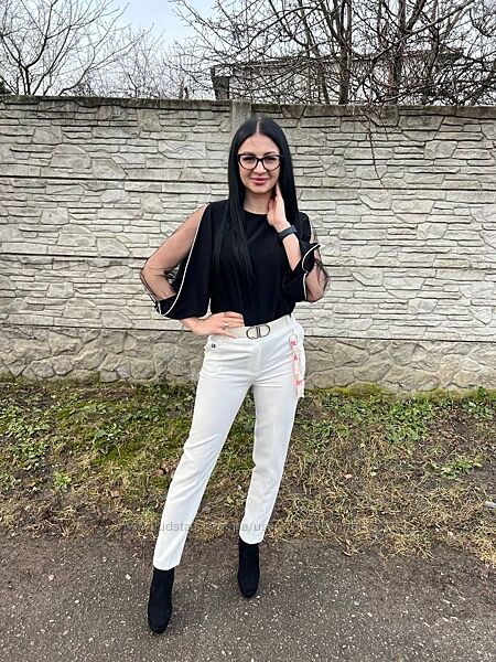 Жіночі брюки на весну у білому кольорі. Звужені до низу. Розміри: 44, 46, 48. Пояс йде в комплекті. Фабрична Туреччина. Довжина:99 см.44 (М) підійде на стегна 95-99 см