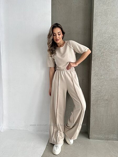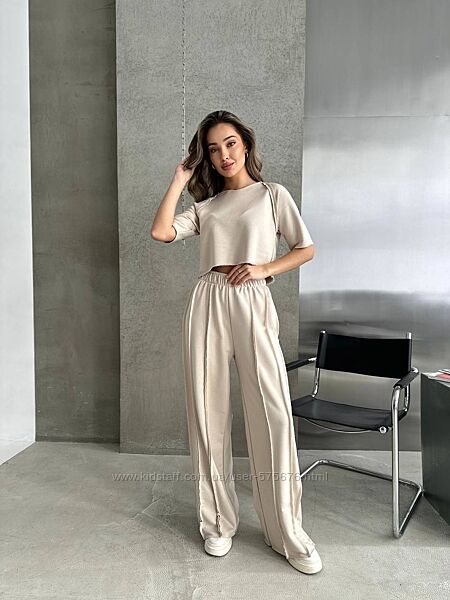 Нереально крутий та стильний костюм, штани палаццо та укорочена футболка.