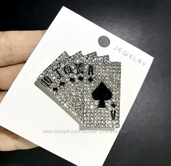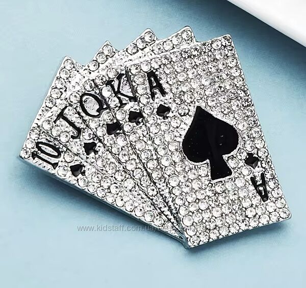 Красивый блестящий и стильный аксессуар брошь /кулон в виде колоды карт, придаст законченность образу, подчеркнет Вашу индивидуальность и уникальность.Тип крепления: булавка, также есть отверстие, можно использовать как кулон.