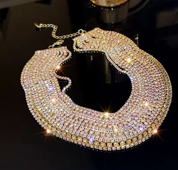 Шикарный красивый многослойный чокер колье.Каждый камень блистает, словно настоящие драгоценности, и придает украшению неповторимый блеск.