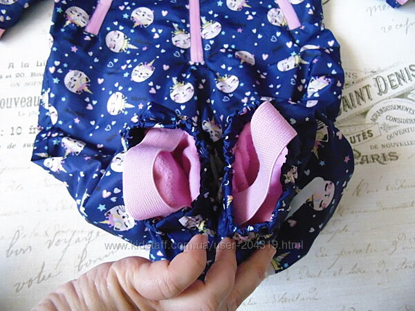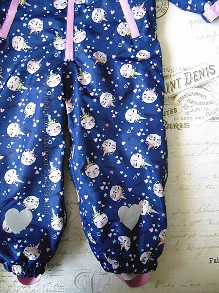 Має світловідблискуючі елементи у вигляді ????, манжети рукавчиків регулюються липучками , є штрипки для взуття, 2 кармани, глибокий капюшон.
