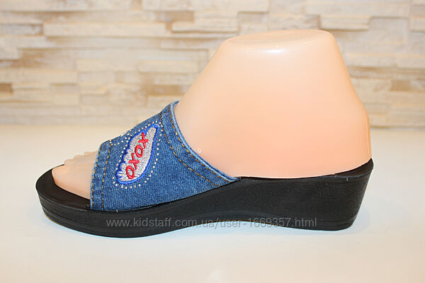 Подробное описание: Шлепанцы женские джинсовые на танкетке Б1671