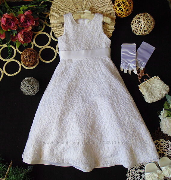 Казкове білосніжне плаття для принцесси з мережива Seuuol на 6 років,зріст 116 см на атласному чохлі