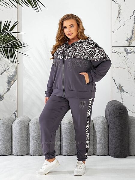 Стильний костюм на змійці, прикрашений камінням. Штани із завищеною талією, кишені, пояс на гумці 4 см