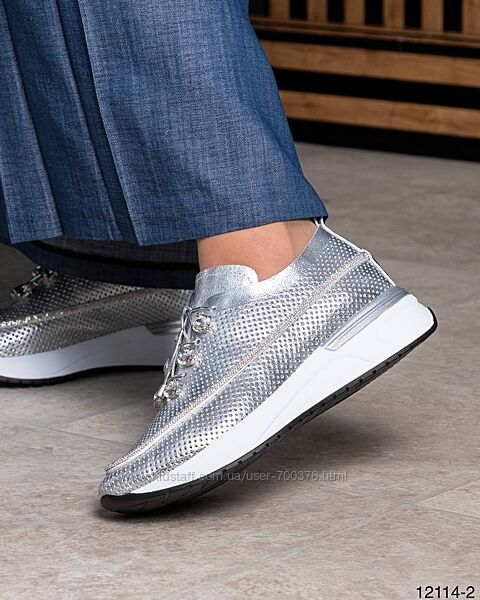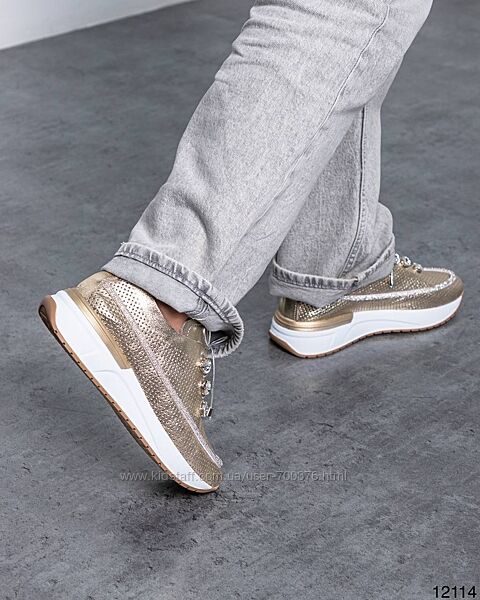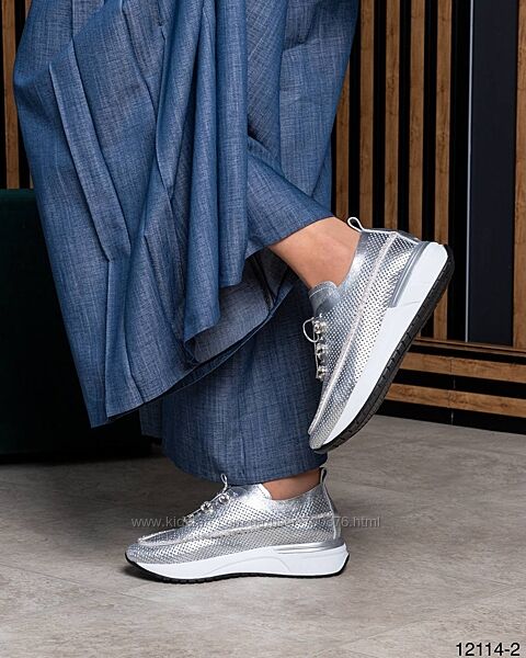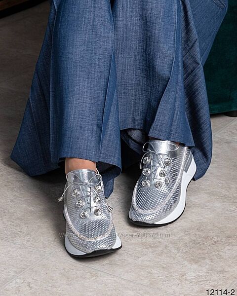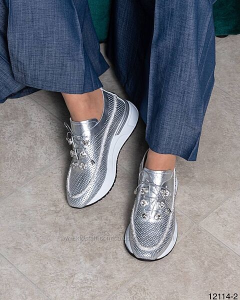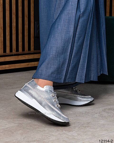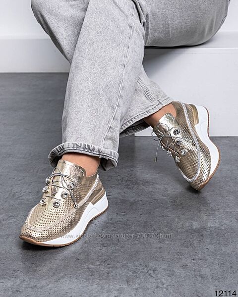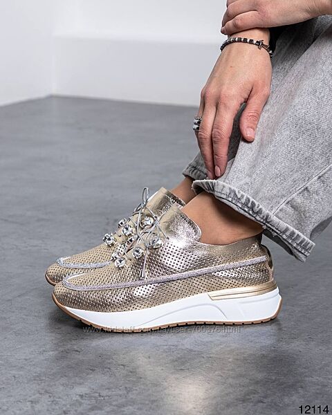 Яскраві кросівки, натуральна шкіра з перфорацією, золото/срібло. Всередині шкіряний підклад. Висота підошви 4.5/2 см. Розмір в розмір. Виробник Туреччина.