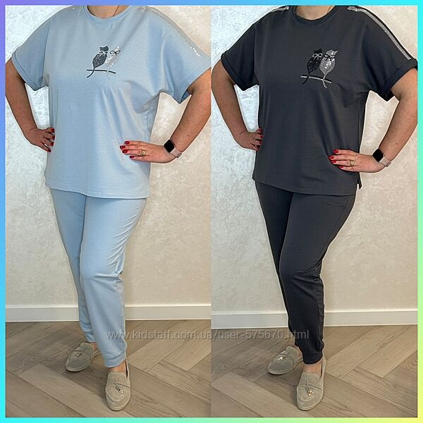 50-52, 54-56 костюм двійка котики футболка та брюки