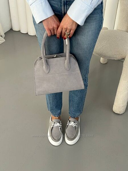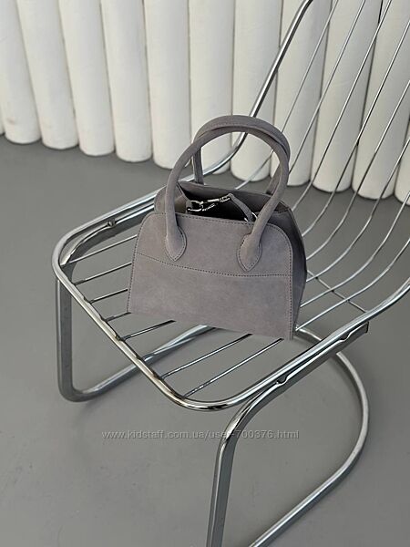 Сумка жіноча, натуральна замша, світло - сіра. Довжина: 25,5 см. Висота: 18 см. Ширина: 12/17 см. Ручки: 13,5 см. Максимальна довжина довгого ремінця: 123 см. Виробник: Україна.