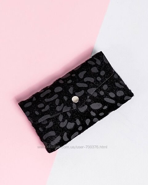 Сумка - клатч, чорний леопард. Матеріал верху: PU-шкіра "хутряна". Всередині одне основне відділення. У комплекті ремінець на пояс. Застібка на кнопці. Розмір: 18*11*2 см