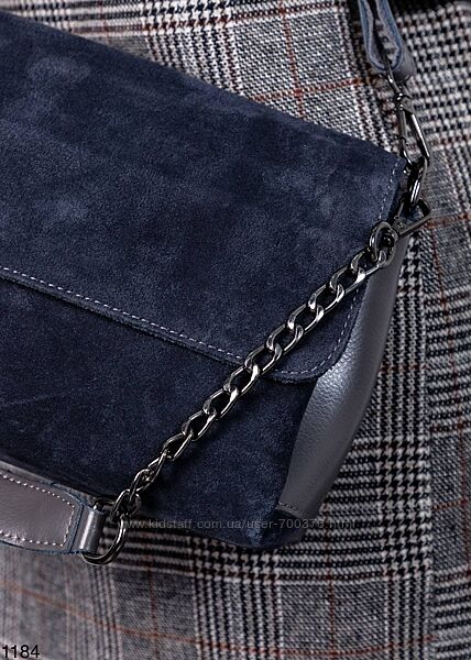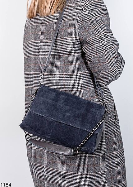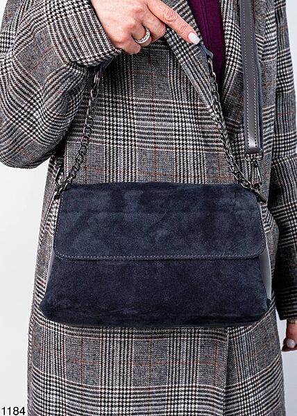Сумка жіноча, натуральна замша/шкіра, темно - сіра
