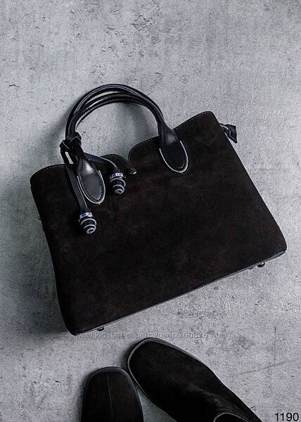 Сумка жіноча, натуральна замша/шкіра PU, чорна