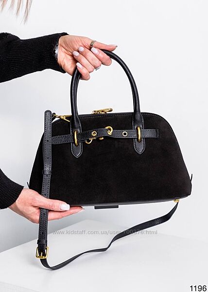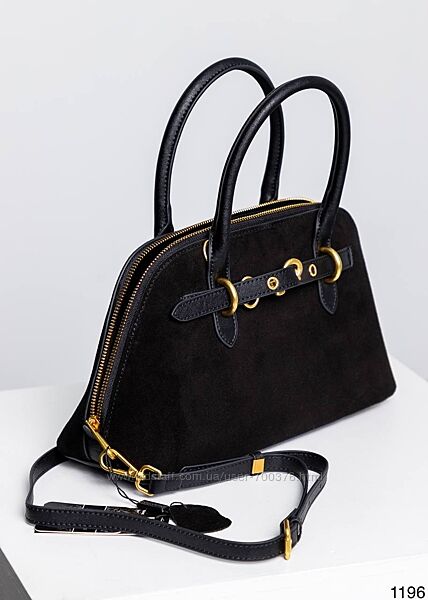 Сумка жіноча, натуральна замша/шкіра, чорна