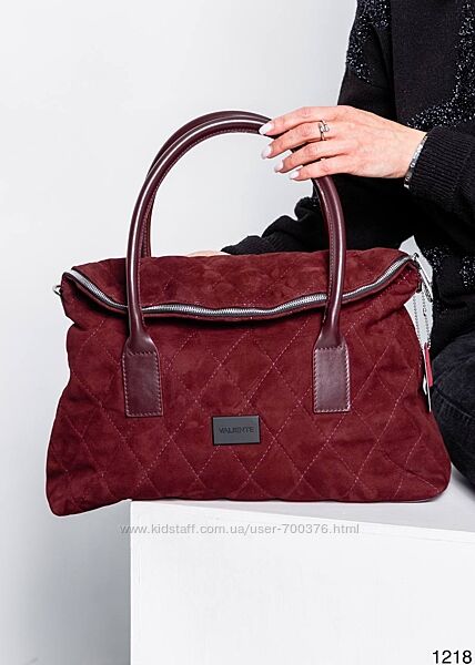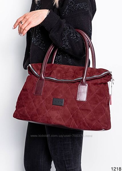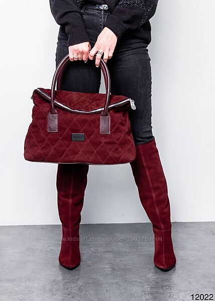 Сумка жіноча, натуральна замша/шкіра, марсала. Одне велике відділення з карманами. Довгий пасок в комплекті. Розмір 32*16*12 (в складеному вигляді). Український виробник.