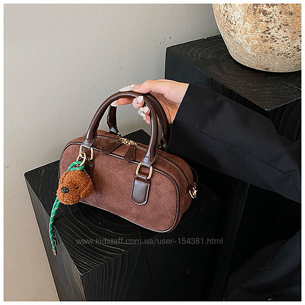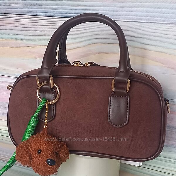 Подробное описание: Сумка з підвіскою брелком, замш Міу, коричневий, шоколад боулінг багет
