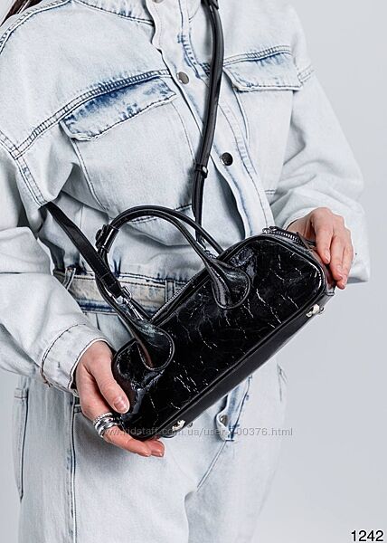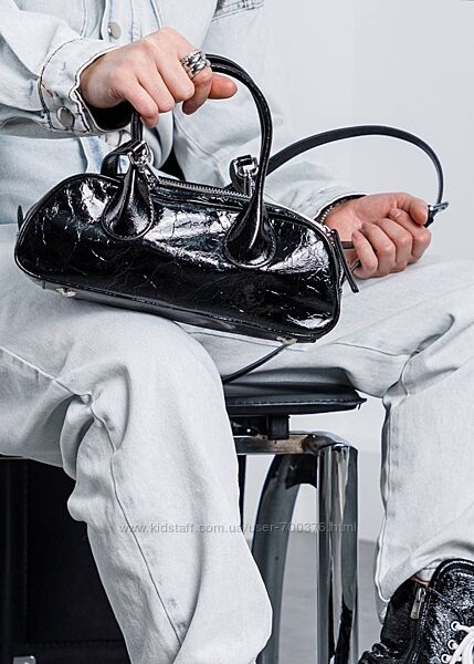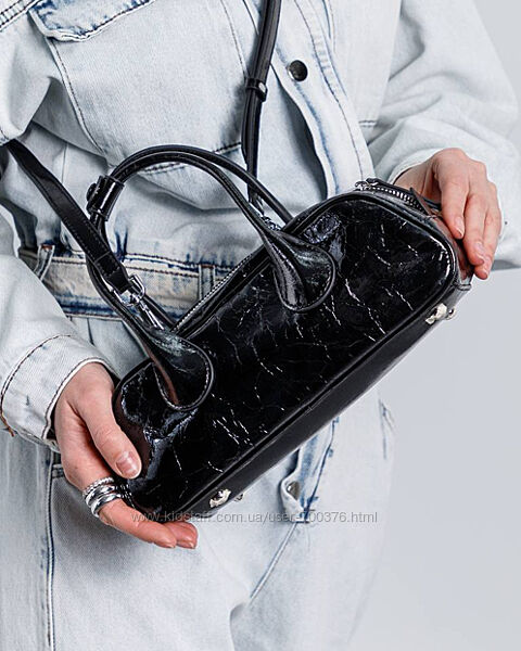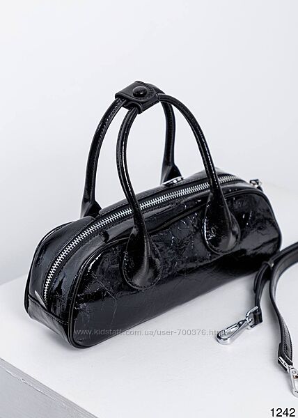 Сумка жіноча, натуральна лакова шкіра, чорна