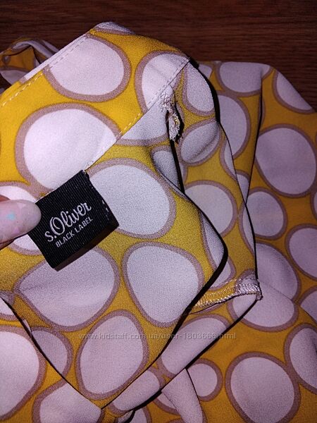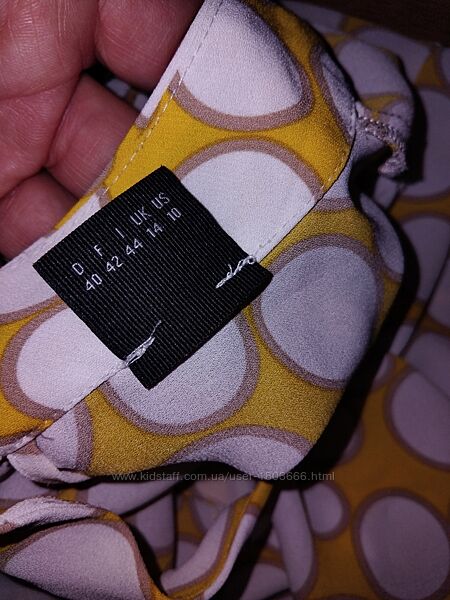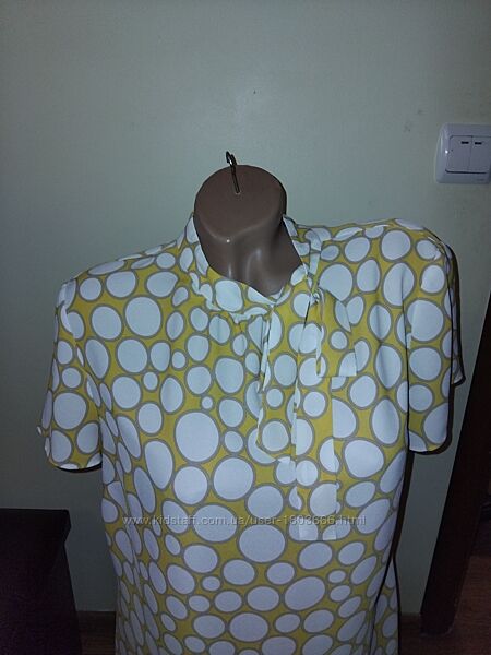 Блуза жовта в кульки 48р.Желтая в белый горох LДовжина 65 в грудях 53 на шиї бант завязаний