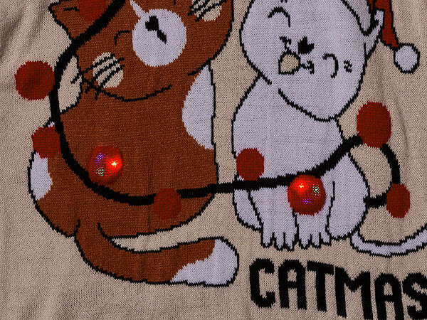 Джемпер із м´якої пряжі з різдвяним принтом та довгими рукавами від бренду Pepperts. Рельєфна обв´язка горловини, низу рукавів та нижнього краю. З миготливими світлодіодами. Підсвічування може не працювати, тому що в процесі доставки може розрядитися живильний елемент. Підсвічування, що не працює, не вважається браком.Заміри: надаємо по запиту