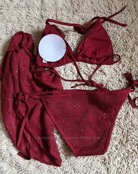 Верх з поролоновими вставками, акуратні плавки на зав´язках, купальник повністтю на підкладці, пряжа з мілкими паєтками, дуже ефекно виглядає.
