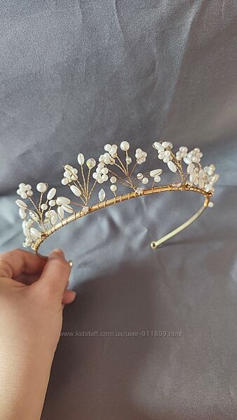 Перше фото тіара ручної роботи, каміння переливаються на сонці, дуже гарна, є сережки до неї у подарунок, 300 грн Друге фото - тіара з камінням та річними перлинами, 300 грн Третє фото - 75 грн Четверте фото - 165 грн П´яте фото - ручна робота, 165 грн Останні фото - обручі по 85 грн Пересилаю Україною
