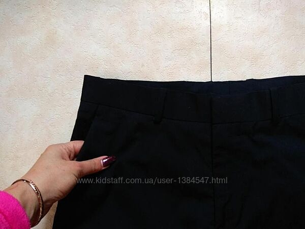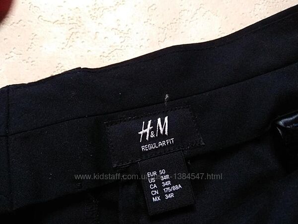 Мужские брендовые классические черные штаны брюки H&M, 34 размер. Не ношение (сток). Красиво ложатся по фигурe. Oтличного качества. Высокая посадка. Тянутся. В поясе - 43-44 cм. В бедрах - 54-55 см. Длина - 107 cм. Низ - 18 cм. Посадка 27 и 40 см. Пересылаю.