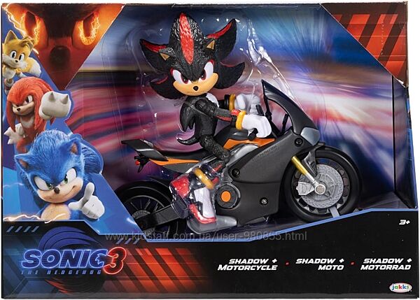 Подробное описание: Набір Sonic 3 Movie Shadow Figure & Motorcycle Шедоу на мотоциклі Сонік 3