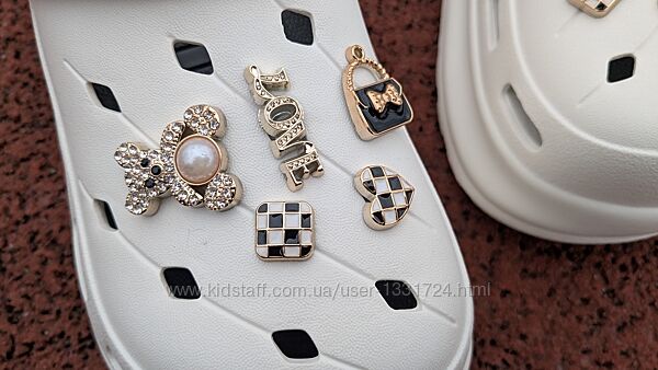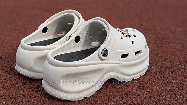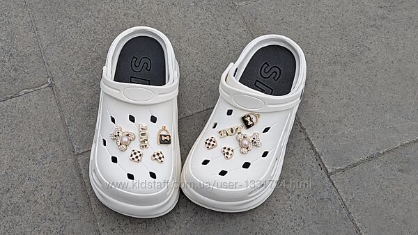 Легенькі масивні шльопки-крокси молочного кольору з піни зі зйомними прикрасами. ХІТ ПРОДАЖ😍Платформа: 4-7 смМаломірять