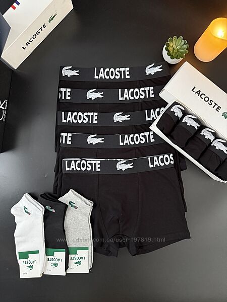 Набор 5 шт. Мужские трусы боксеры Lacoste black 3D Турция. Мужское нижнее белье. Трусы боксеры Lacoste . Чоловіча білизна Lacoste 3D. Боксери Lacoste .Набір шкарпеток можна купити додатково до трусів.