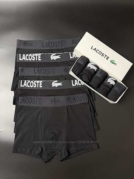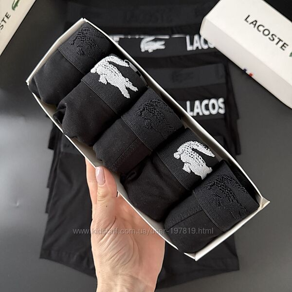 Подробное описание: Набор 5 шт. Мужские трусы боксеры Lacoste black 3D Турция. Боксери Lacoste.
