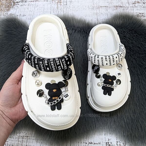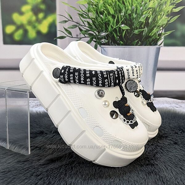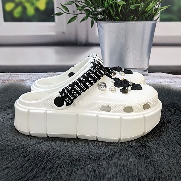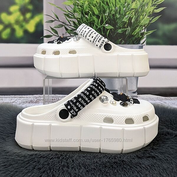 Подробное описание: Кроксы женские на платформе белые с джибитсами Progress 43699