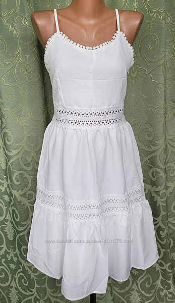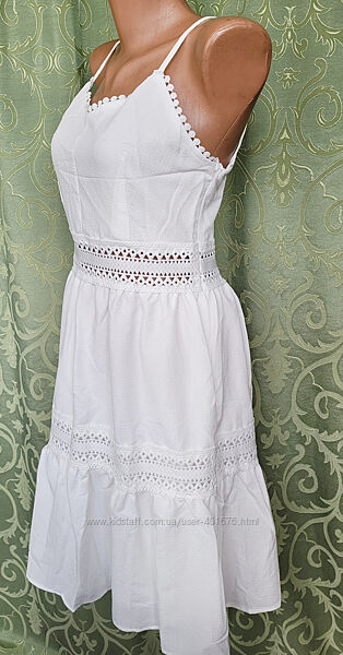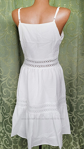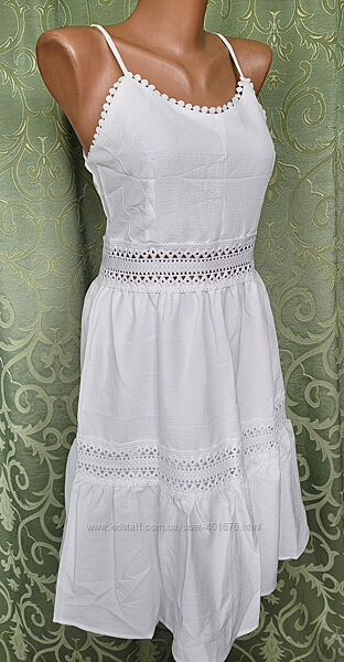 0663Женский, белый сарафан, легкая ткань креп жатка, с подкладкой, бретели регулируются, по талии и внизу на юбке тесьма кружевная.