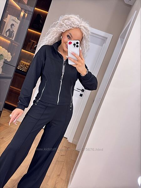 Костюм зі штанами палаццоКофта на змійці, якісна фурнітура. По низу кофта на резинці. Робочі кишені на штанах.