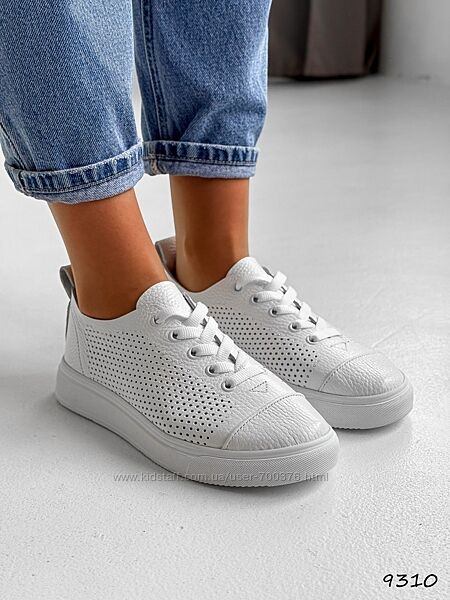 Кеди Alesia, натуральна шкіра з перфорацією, білі