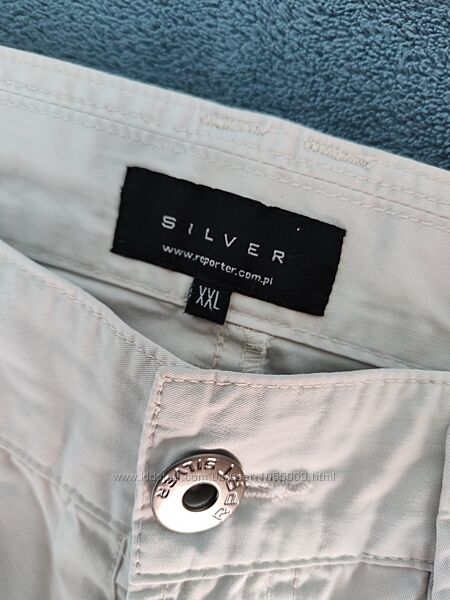 Фірмові чоловічі штани на весну-літо. Розмір 36/36. На жаль малі. Ношені дуже мало. Стан ідеальний. Бавовна. Ціна за обидві пари. НМ заміри: талія - 94-96 см. Бедра - 122 см. Довжина - 112/84 см.Silver заміри: талія - 94 см., бедра - 119 см, довжина - 112/87 см.